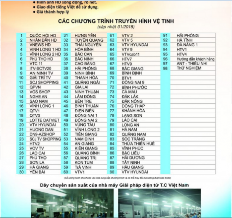 - Đầu thu vệ tinh: dành cho các địa điểm vùng sâu, vùng xa chưa có sóng truyền hình kỹ thuật số mặt đất, thu được các kênh truyền hình vệ tinh miễn phí: VTV1, VTV2,.....