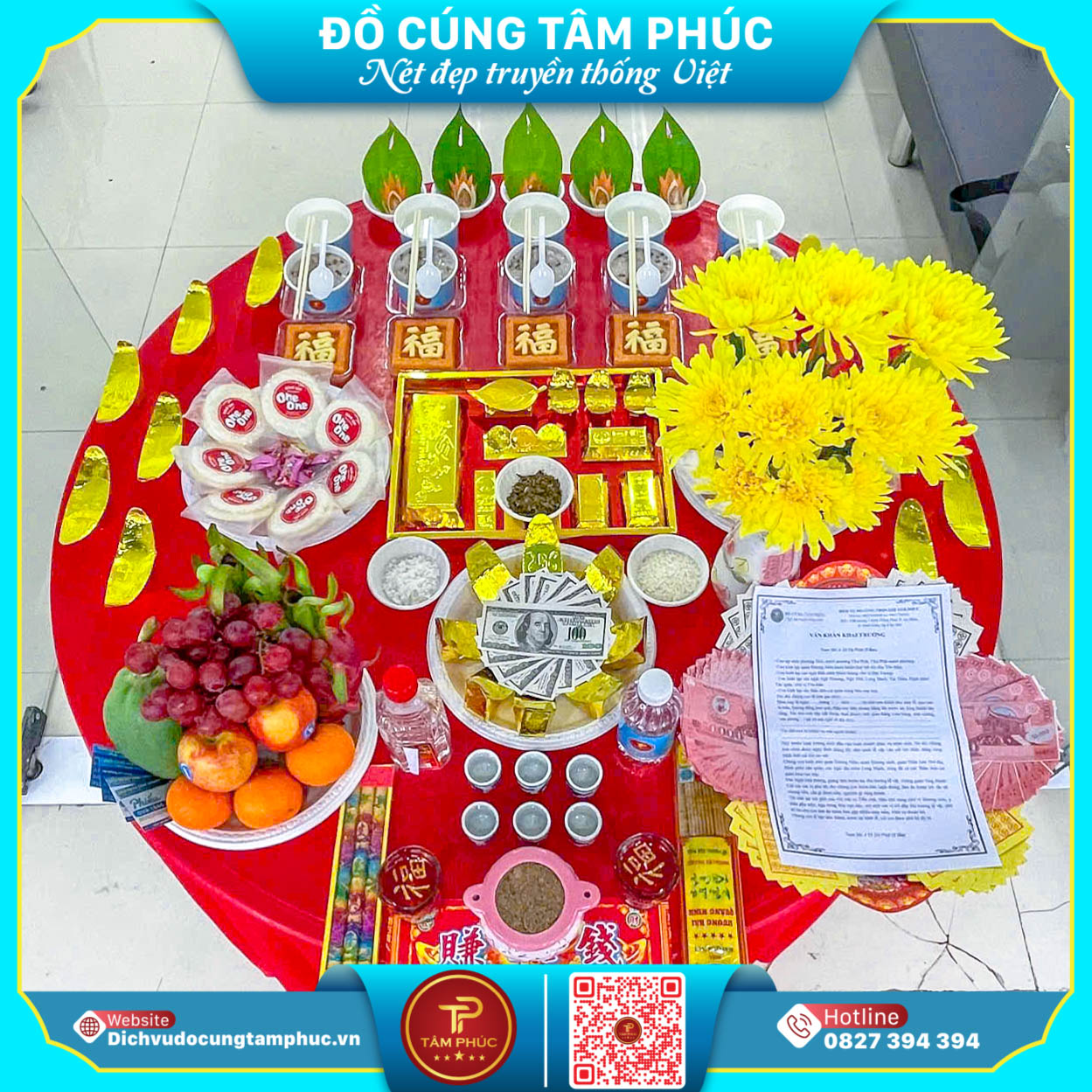Mâm cúng khai trương - Khởi sự hanh thông, bình an thịnh vượng.