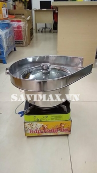 Nồi nổ bắp rang bơ bằng inox, có máng rộng, nắp kính